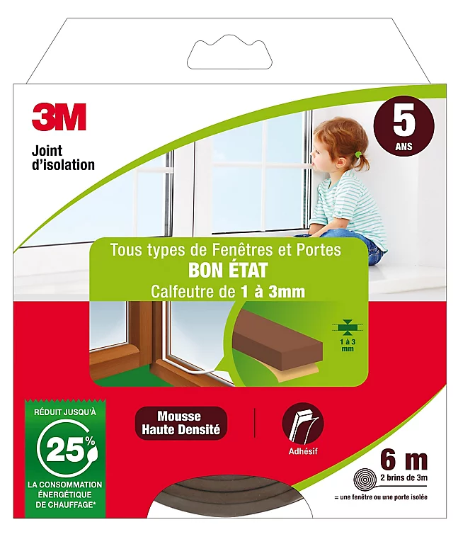 Joint mousse porte et fenêtre bon état 3M Classique 1 à 3 mm marron L.6 m