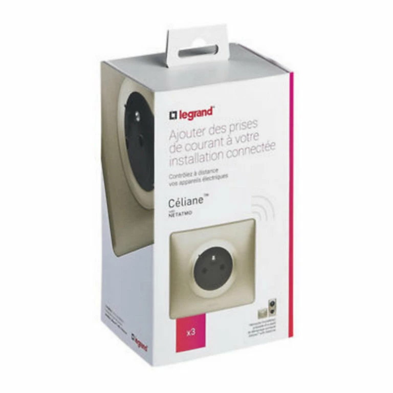 Prise de courant installation connectée Céliane with Netatmo titane – 3 prises